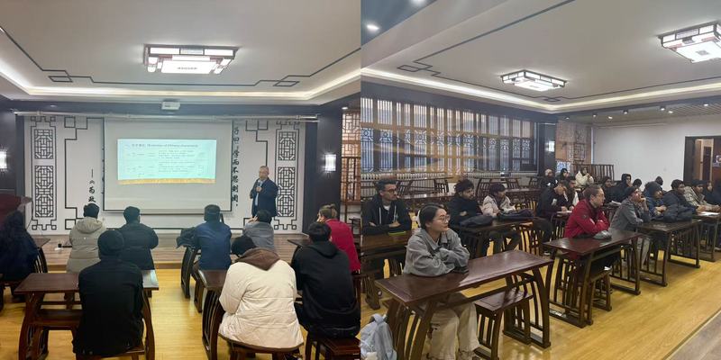 本次培训交流活动特别邀请学院院长张照录担任主讲人。他以“汉字演化与先秦诗歌”为核心主题,凭借深厚的知识积淀与丰富的教学经验,带领国际学生探寻汉字从远古符号到成熟文字的演化轨迹,解读先秦诗歌的质朴文风与深邃内涵,让参与者在聆听中明晰文字与诗歌的文化渊源,在思考中体会中华传统文化的精神内核。