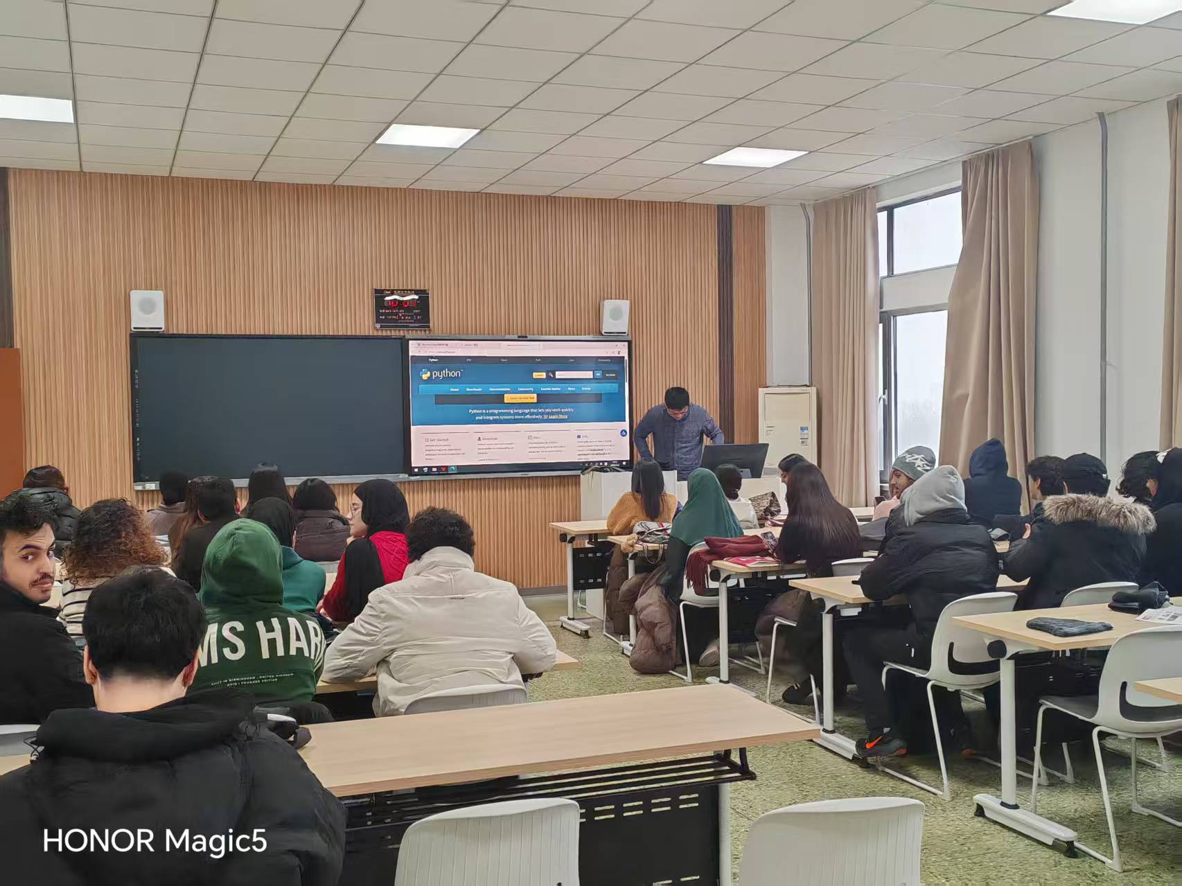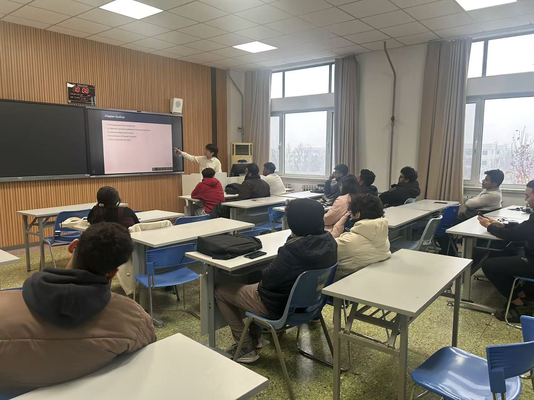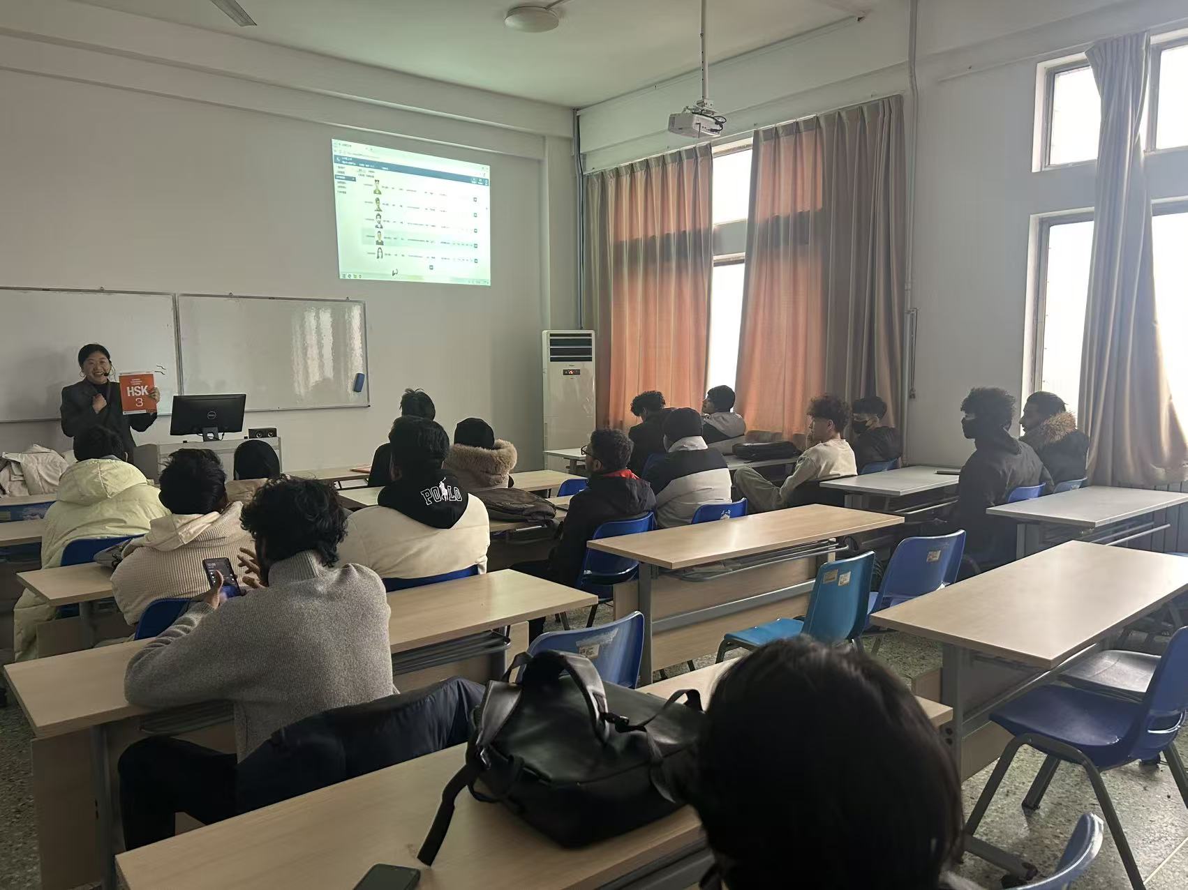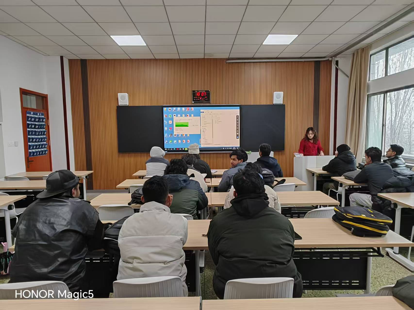 巡查过程中,教学管理人员重点围绕教师到岗情况、教学设计质量、课堂组织效果、学生出勤状态及教学保障条件等方面进行检视。从巡查结果来看,任课教师精神饱满、准时到岗,教学设计详实、备课充分,充分展现了扎实的专业素养与严谨的敬业精神;国际学生学习热情高涨,课堂专注投入、态度端正,师生互动积极,课堂氛围活跃。同时,教学楼内环境整洁规范,各类教学设备运行正常,整体教学秩序井然有序,为新学期教学活动的顺利开展筑牢坚实基础。